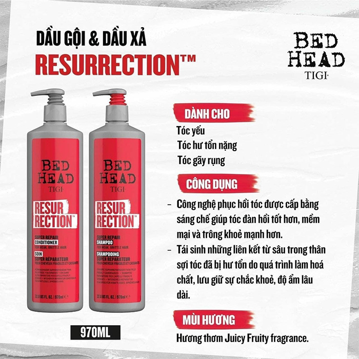 Chăm sóc và phục hồi mái tóc hư tổn của bạn với bộ dầu gội xả TIGI Bed Head Resurrection – Giải pháp hoàn hảo cho tóc chắc khỏe, mềm mượt và bóng mượt hơn bao giờ hết!