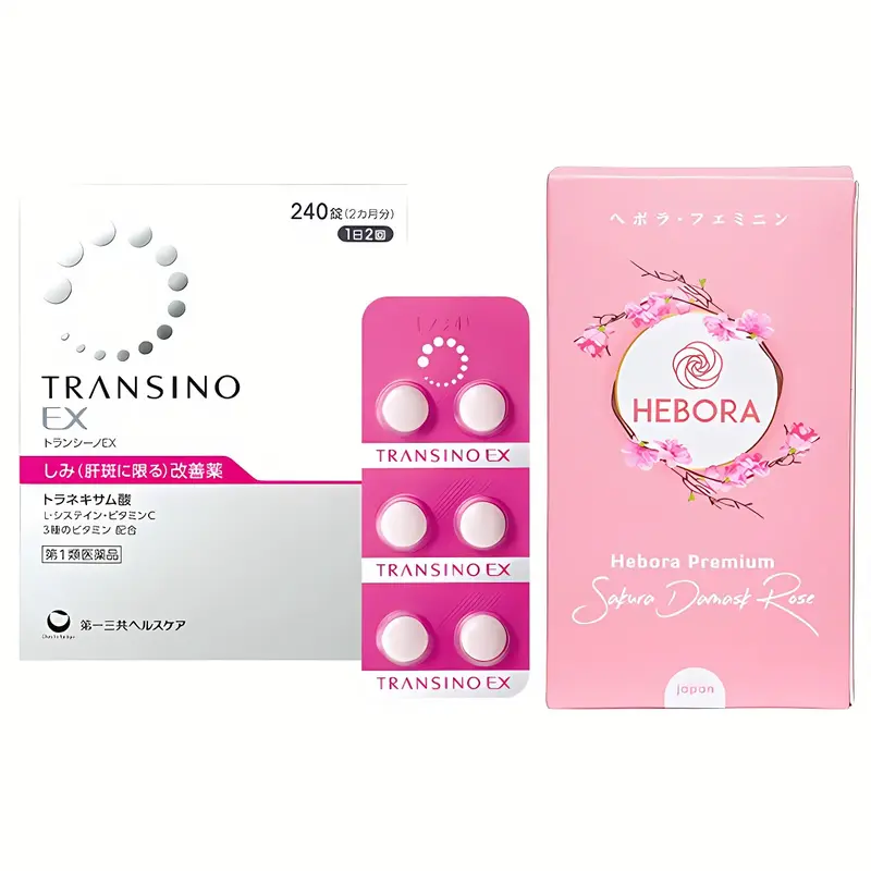 | Tên sản phẩm | Bộ đôi Transino Whitening và Hebora hỗ trợ dưỡng da Nhật Bản |