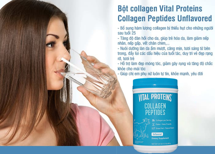 - Bột collagen Vital Proteins Collagen Peptides Unflavored là một trong những loại bột collagen đang được ưa chuộng nhất tại Mỹ.