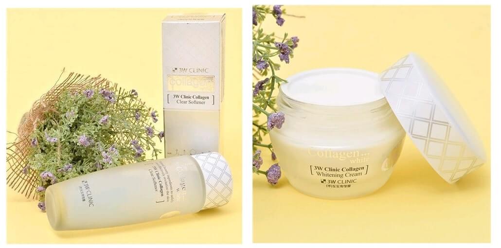 Bộ đôi dưỡng trắng da 3W Clinic Collagen chứa thành phần tự nhiên, an toàn, thích hợp với mọi loại da