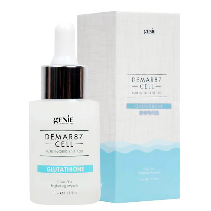 Genie Demar87 Glutathione Ampoule 33ml Hàn Quốc là tinh chất chăm sóc da chứa glutathione giúp hỗ trợ dưỡng sáng da và cải thiện độ tươi tắn. Ampoule Glutathione Genie Demar87 thẩm thấu nhanh, hỗ trợ nuôi dưỡng làn da mềm mịn, phù hợp cho quy trình chăm sóc da hằng ngày.