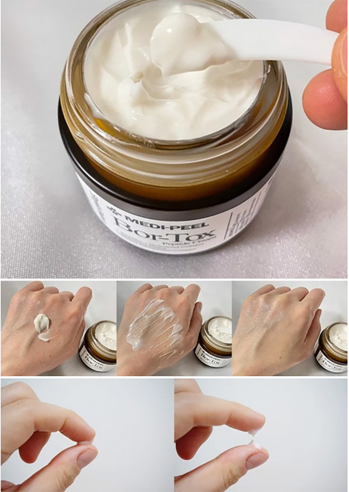 Kem Medi Peel Bor Tox Peptide có kết cấu kem mềm, dễ tán và nhanh thẩm thấu trên da. Sản phẩm thường được sử dụng trong routine chăm sóc da hằng ngày.