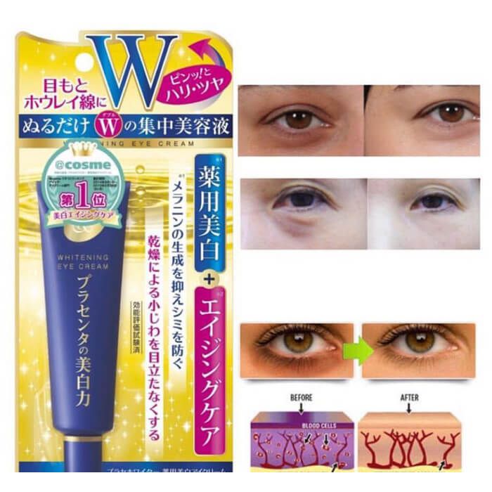 Kem Trị Thâm Quầng Mắt Meishoku Whitening Eye Cream Nhật Bản là sản phẩm chăm sóc vùng da mắt nổi bật, giúp giải quyết hiệu quả các vấn đề về thâm quầng và chống lão hóa. Với thành phần chính từ chiết xuất nhau thai, vitamin E và axit hyaluronic, sản phẩm không chỉ làm sáng vùng da quanh mắt mà còn cung cấp độ ẩm cần thiết, giúp da trở nên mịn màng và săn chắc. Nổi bật với công dụng cải thiện sắc tố da, kem trị thâm quầng mắt Meishoku giúp làm mờ các vết thâm, giảm bọng mắt và nếp nhăn quanh mắt hiệu quả.Meishoku eye cream thích hợp cho những ai đang gặp vấn đề với quầng thâm do thức khuya, stress hay do di truyền. Kem mắt Nhật Bản này cũng là lựa chọn lý tưởng cho người làm việc nhiều với máy tính và những người muốn duy trì làn da quanh mắt trẻ trung, không dấu hiệu lão hóa. Hiệu quả của Meishoku whitening eye cream đã được kiểm chứng bởi nhiều người dùng, với công thức chứa các thành phần dưỡng chất đặc biệt như collagen và chiết xuất từ cam thảo, giúp tăng cường độ đàn hồi và làm dịu da. Đối với những ai đang tìm kiếm sản phẩm chăm sóc mắt toàn diện, Meishoku eye cream Nhật Bản là một lựa chọn đáng tin cậy. Bạn có thể dễ dàng tìm thấy sản phẩm này tại các cửa hàng mỹ phẩm uy tín hoặc trực tuyến để đảm bảo mua Meishoku eye cream chính hãng. Giá Meishoku eye cream phù hợp với chất lượng mà nó mang lại, là sự đầu tư xứng đáng cho làn da.