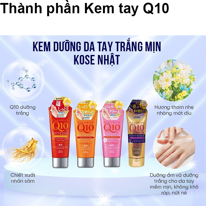 | Tên sản phẩm | Kem Dưỡng Tay Q10 Kose CoenRich Whitening Medicated 80g Nhật Bản |