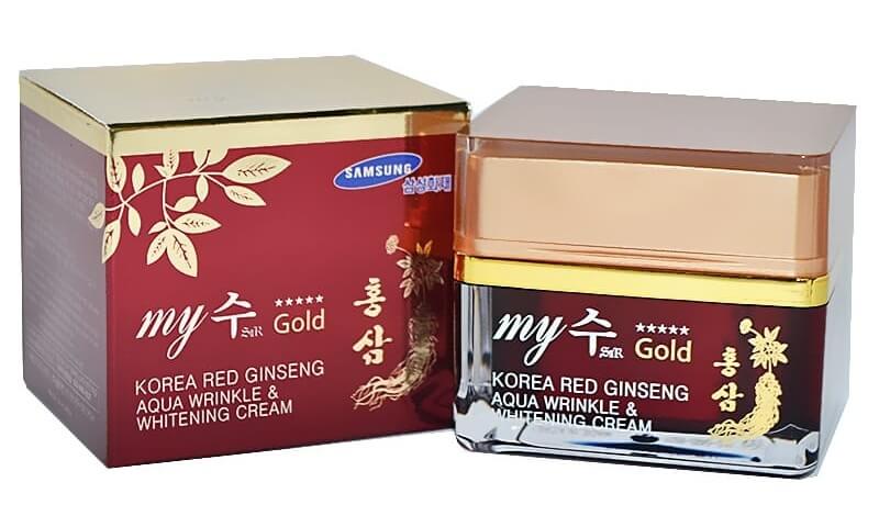 | Tên sản phẩm | Kem dưỡng trắng da hồng sâm My Gold Aqua Red Ginseng 50ml Hàn Quốc |