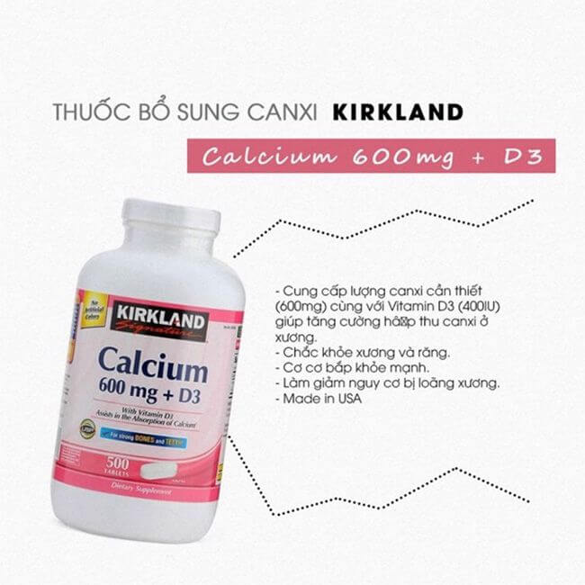 Sử dụng kirkland calcium 600mg + d3 500 viên giúp bổ sung dưỡng chất cần thiết cho cơ thể, hỗ trợ duy trì sức khỏe xương và đáp ứng nhu cầu canxi trong chế độ dinh dưỡng hằng ngày.
