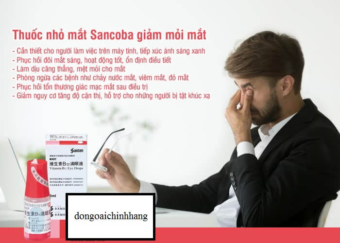 Sancoba Santen 5ml là thuốc nhỏ mắt từ Nhật Bản chứa vitamin B12 hỗ trợ chăm sóc và bổ sung dưỡng chất cho mắt. Sancoba eye drops 5ml được nhiều người lựa chọn khi mắt mệt mỏi do học tập hoặc làm việc với màn hình. Sancoba santen chính hãng dạng nhỏ tiện sử dụng hằng ngày.