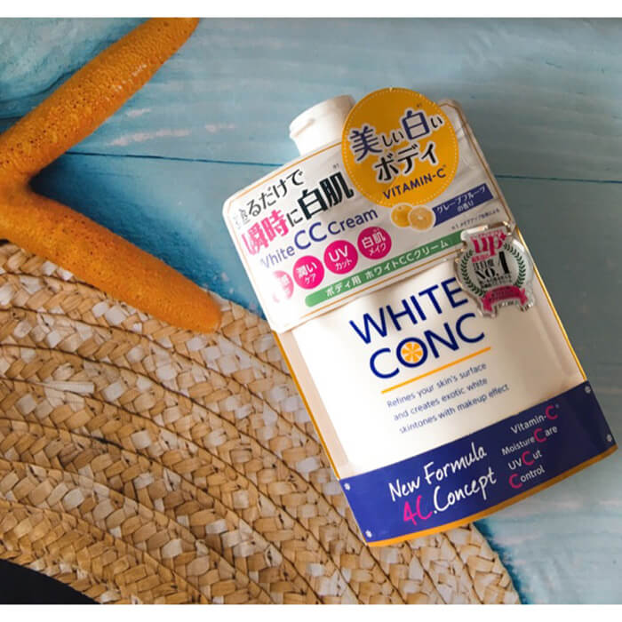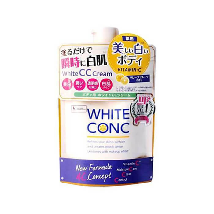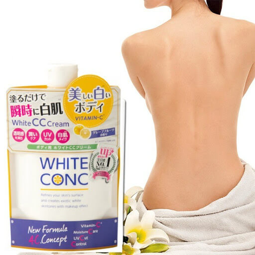 Sản phẩm White Conc CC Cream Japan có kết cấu nhẹ, dễ thoa và thấm nhanh vào da. White Conc dưỡng thể ban ngày phù hợp sử dụng sau khi tắm hoặc trước khi ra ngoài để chăm sóc da cơ thể.