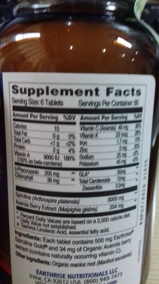 | Tên sản phẩm | Tảo Mặt Trời Spirulina Gold Plus Earthrise Mỹ 360 Viên |