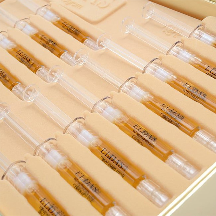 Serum tế bào gốc Eldas EG Tox Program Coreana là sản phẩm dưỡng da cao cấp đến từ Hàn Quốc, nổi bật với công thức chứa các thành phần tế bào gốc và dưỡng chất độc đáo. Sản phẩm giúp tái tạo làn da, ngăn ngừa và giảm thiểu các dấu hiệu lão hóa như nếp nhăn, da chảy xệ, đồng thời cung cấp độ ẩm và dưỡng chất giúp làn da luôn mềm mịn, sáng khỏe. Mỗi hộp Eldas EG Tox Program gồm 4 ống serum, thiết kế nhỏ gọn, tiện lợi và đảm bảo hiệu quả dưỡng da nhanh chóng.