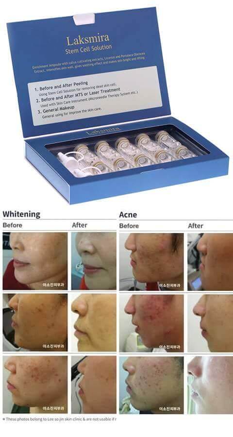 Tế bào gốc Laksmira trị sẹo, rỗ, trị mụn, lỗ chân lông to, trị nám, trắng da