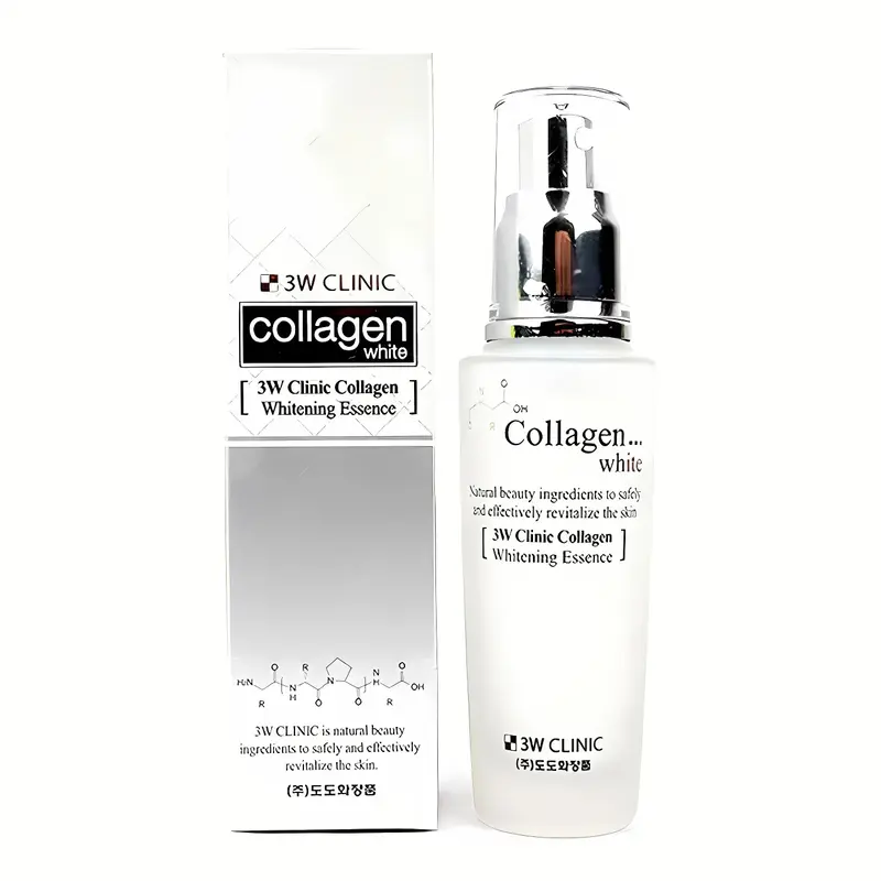 Tinh chất dưỡng trắng da Collagen White Essence từ thương hiệu 3W Clinic Hàn Quốc là sự lựa chọn hoàn hảo dành cho những ai đang tìm kiếm sản phẩm làm trắng da hiệu quả. Với dung tích 50ml, sản phẩm này không chỉ nổi bật với khả năng dưỡng trắng da mặt mà còn mang lại nhiều công dụng tuyệt vời khác.Thành phần chính của tinh chất là collagen, giúp tăng cường độ đàn hồi cho da, cải thiện cấu trúc da từ sâu bên trong, mang lại làn da căng mịn và tươi trẻ. Essence dưỡng trắng này còn chứa các dưỡng chất giúp làm mờ vết thâm nám, đều màu da và ngăn ngừa sự hình thành của các sắc tố melanin gây sạm da. Đây là một serum dưỡng trắng da collagen hiệu quả, đặc biệt phù hợp cho làn da đang gặp vấn đề về sắc tố.Tinh chất collagen dưỡng trắng này được khuyên dùng cho ba đối tượng chínhnhững người có làn da thâm nám, da không đều màu và da bị lão hóa sớm. Với công thức cải tiến, sản phẩm giúp nuôi dưỡng làn da mềm mại, mịn màng hơn sau mỗi lần sử dụng. Sản phẩm dưỡng da collagen này còn hỗ trợ bảo vệ da khỏi tác động của môi trường, giúp da luôn khỏe mạnh và đầy sức sống.Collagen White Essence từ 3W Clinic thực sự là một giải pháp toàn diện cho nhu cầu dưỡng trắng và chăm sóc da. Với hiệu quả đã được chứng minh, sản phẩm này không chỉ làm trắng da mà còn là sự bổ sung hoàn hảo cho quy trình chăm sóc da hàng ngày của bạn.