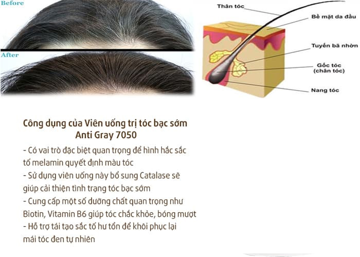 Sử dụng Viên Hỗ Cải Thiện Tóc Bạc Sớm Anti Gray Hair 7050 để cải thiện các vấn đề về tóc
