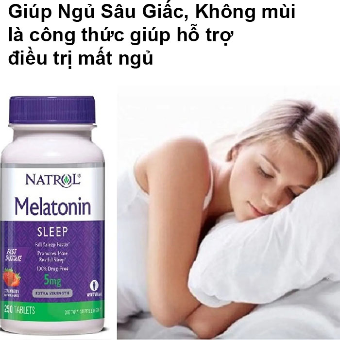 Viên ngậm Natrol Melatonin Sleep 5mg là sản phẩm được thiết kế đặc biệt để hỗ trợ giấc ngủ tự nhiên của bạn. Với hàm lượng melatonin 5mg, sản phẩm giúp điều hòa chu kỳ giấc ngủ, tạo ra cảm giác buồn ngủ tự nhiên và cải thiện chất lượng giấc ngủ một cách hiệu quả. Đặc biệt, viên ngậm giúp ngủ ngon Natrol Melatonin dễ dàng sử dụng, chỉ cần ngậm tan trong miệng mà không cần nước, giúp hấp thu nhanh chóng vào cơ thể.Sản phẩm melatonin của Mỹ này đặc biệt hữu ích cho những người thường xuyên bị rối loạn giấc ngủ, người làm việc ca đêm hay những người đi du lịch qua nhiều múi giờ. Natrol Melatonin chính hãng không chỉ hỗ trợ giấc ngủ ngon mà còn giúp thư giãn, giảm căng thẳng và mệt mỏi sau một ngày dài làm việc. Melatonin 250 viên là lựa chọn tối ưu cho những ai muốn duy trì một giấc ngủ chất lượng dài hạn.Thành phần nổi bật của viên ngậm natrol melatonin là melatonin sleep 5mg, một hormone tự nhiên trong cơ thể, giúp điều chỉnh chu kỳ giấc ngủ. Tác dụng melatonin 5mg đã được khoa học chứng minh trong việc cải thiện giấc ngủ không sâu và giấc ngủ bị gián đoạn. Giá melatonin sleep rất hợp lý với chất lượng được kiểm chứng, đáp ứng nhu cầu của người tiêu dùng.Đối tượng sử dụng chính gồm người trưởng thành gặp khó khăn trong việc đi vào giấc ngủ, người thường xuyên phải thay đổi múi giờ như phi công, tiếp viên hàng không, và người làm việc theo ca. Khi mua melatonin 5mg, bạn có thể yên tâm về chất lượng và hiệu quả của sản phẩm này trong việc hỗ trợ giấc ngủ ngon.