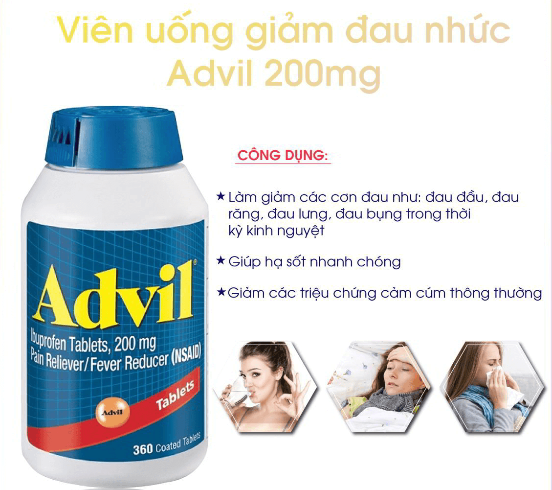 Sử dụng Advil ibuprofen 200mg 360 viên đúng hướng dẫn có thể hỗ trợ giảm đau và hạ sốt trong các trường hợp thông thường.