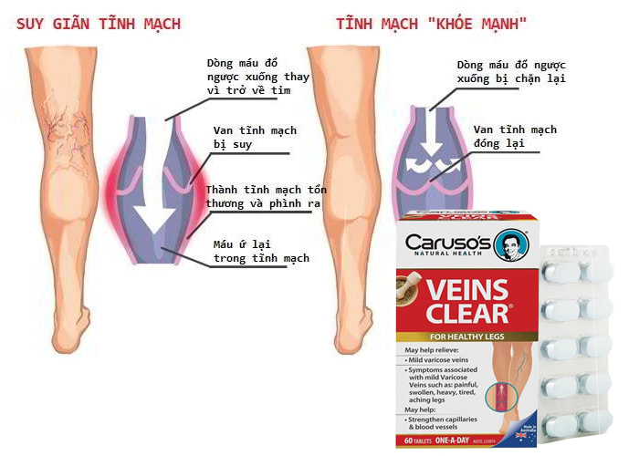 Thuốc điều trị suy giãn tĩnh mạch Caruso’s Veins Clear 60 viên của Úc đạt những tiêu chuẩn hết sức nghiêm ngặt về sức khỏe
