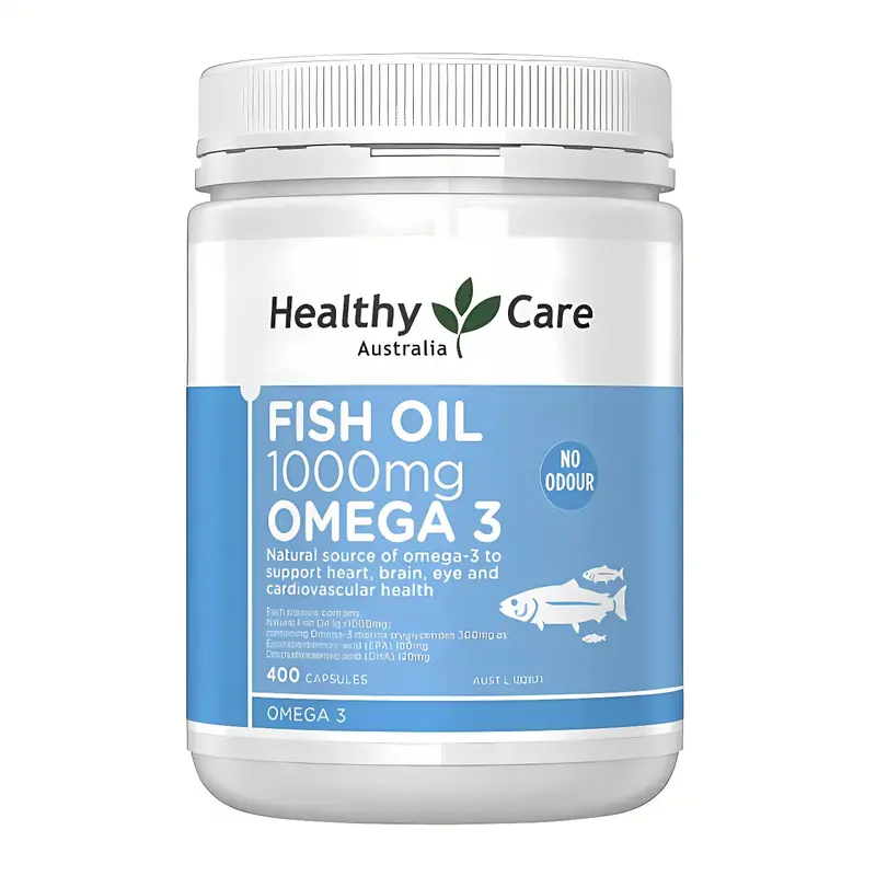 Viên Dầu Cá Healthy Care Fish Oil Omega-3 1000mg là thực phẩm chức năng chất lượng cao đến từ Úc, nổi bật với thành phần omega-3 tinh khiết. Được sản xuất bởi thương hiệu Healthy Care danh tiếng, sản phẩm cung cấp một liều lượng dồi dào omega-3 giúp hỗ trợ sức khỏe tim mạch, não bộ và nhiều chức năng khác của cơ thể. Hộp sản phẩm chứa 400 viên, tiện lợi và tiết kiệm cho nhu cầu sử dụng lâu dài.