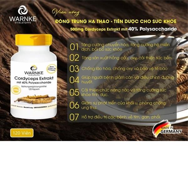 Đông trùng hạ thảo Warnke Đức thuộc thương hiệu Warnke và được sản xuất theo tiêu chuẩn châu Âu.