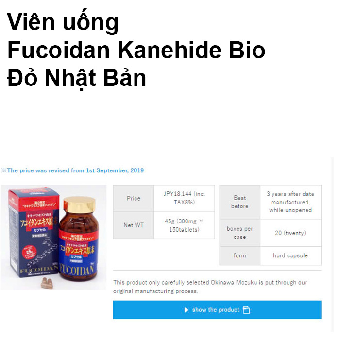 | Tên sản phẩm | Viên uống Fucoidan Okinawa Kanehide Bio màu đỏ 150 viên hỗ trợ tăng cường sức khỏe Nhật Bản |