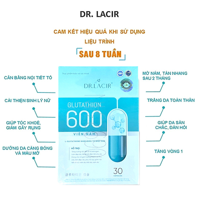 | Tên sản phẩm | Viên Uống Glutathione 600 Dr Lacir – Dr Lacir – Hỗ Trợ Dưỡng Sáng Da & Chống Oxy Hóa – Hộp 30 Viên – Việt Nam |