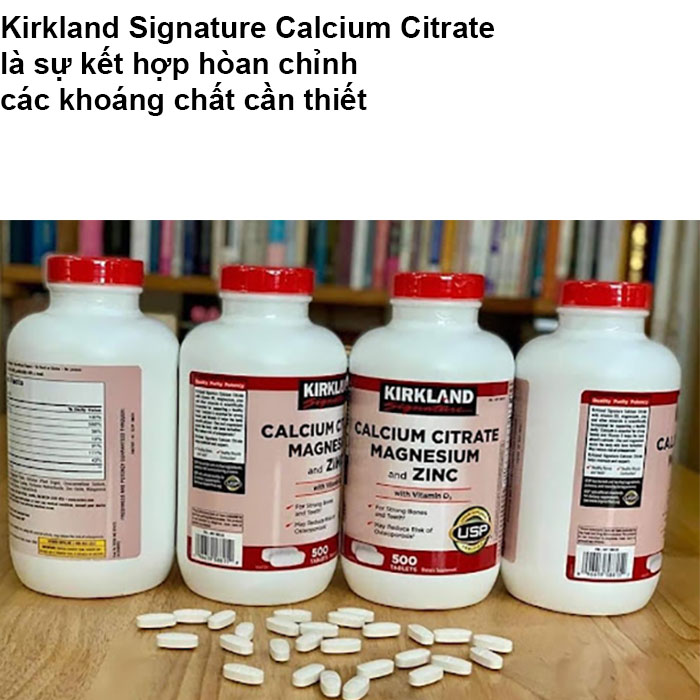 Viên uống Hỗ trợ xương khớp Kirkland Calcium Citrate Magnesium and ZinC 500 viên của Mỹ