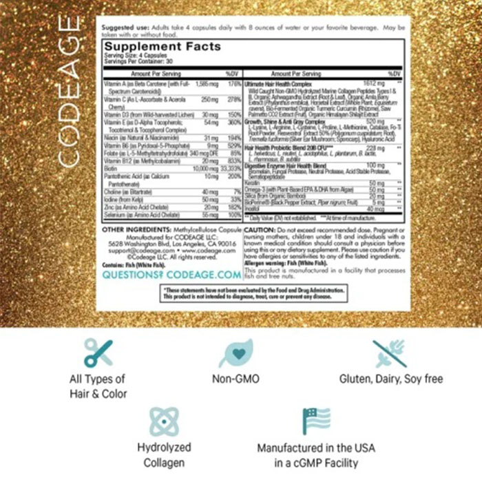 Thành phần Viên Uống Hỗ Trợ Mọc Và Dưỡng Tóc Codeage Vitamins Hair