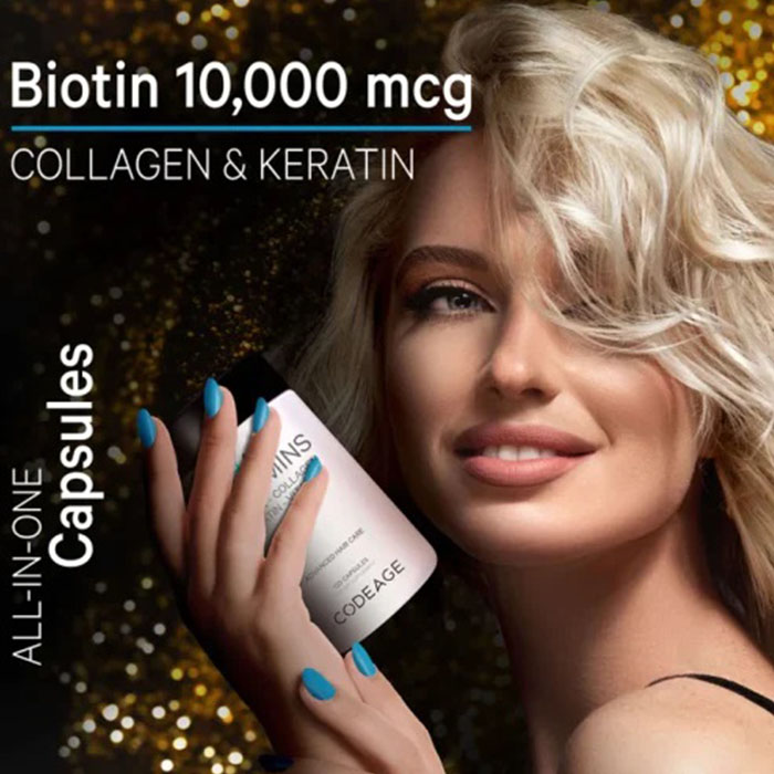 Viên uống mọc tóc CodeAge Vitamins Hair của Mỹ là giải pháp hoàn hảo cho những ai đang phải đối mặt với vấn đề rụng tóc. Sản phẩm này không chỉ giúp giảm rụng tóc mà còn kích thích tóc dày nhanh và khỏe mạnh hơn. Với thành phần chính bao gồm Biotin, Collagen, và các loại vitamin như A, C, D, và E, viên uống dưỡng tóc này đảm bảo cung cấp đầy đủ dưỡng chất cần thiết cho sự phát triển của tóc.Biotin trong sản phẩm có vai trò quan trọng trong việc tăng cường sự phát triển của tóc và móng, giúp tóc mọc nhanh và chắc khỏe. Collagen hỗ trợ cấu trúc tóc, giúp tóc đàn hồi tốt hơn và giảm gãy rụng. Các vitamin và khoáng chất khác trong công thức hỗ trợ toàn diện cho sức khỏe tóc, cung cấp độ ẩm và dưỡng chất cần thiết.Codeage Hair Growth không chỉ giúp cải thiện tình trạng tóc thưa, yếu, mà còn giúp tóc bóng mượt và khỏe mạnh hơn. Thực phẩm chức năng mọc tóc này được khuyên dùng cho những người có tóc mỏng, yếu, dễ gãy và người thường xuyên tạo kiểu tóc gây hư tổn. Sản phẩm cũng phù hợp cho những ai đang trải qua các giai đoạn căng thẳng, chế độ ăn uống thiếu hụt hay thay đổi nội tiết tố gây rụng tóc.Hair Vitamins Mỹ từ CodeAge là lựa chọn lý tưởng cho cả nam và nữ muốn cải thiện sức khỏe tóc tự nhiên. Với 120 viên/hộp, người dùng có thể yên tâm sử dụng lâu dài để đạt hiệu quả tối ưu. Sản phẩm được sản xuất tại Mỹ với công nghệ tiên tiến, đảm bảo chất lượng và an toàn cho người sử dụng. Hãy để Codeage Vitamins Hair đồng hành cùng bạn trên hành trình lấy lại mái tóc chắc khỏe và bồng bềnh.