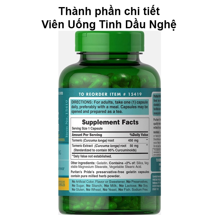 | Tên sản phẩm | Viên Uống Tinh Dầu Nghệ Curcumin Puritan’s Pride 500mg 180 Viên Mỹ |