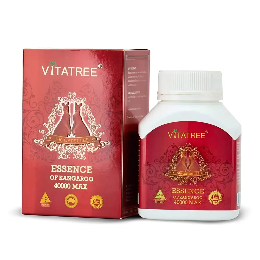 Vitatree Essence Of Kangaroo 40000 Max 100 viên từ Úc bổ sung chiết xuất kangaroo cùng dưỡng chất hỗ trợ sức khỏe nam giới và duy trì thể lực. Sản phẩm dạng viên uống tiện lợi, phù hợp cho nam giới trưởng thành muốn bổ sung dinh dưỡng và chăm sóc sức khỏe hằng ngày.