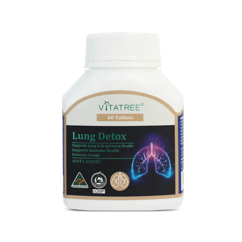 Vitatree Lung Detox 60 viên từ Úc bổ sung các chiết xuất thảo dược giúp hỗ trợ chăm sóc sức khỏe đường hô hấp và duy trì chức năng phổi khỏe mạnh. Dạng viên uống tiện lợi, phù hợp cho người trưởng thành muốn bổ sung dưỡng chất hỗ trợ hệ hô hấp trong cuộc sống hằng ngày.